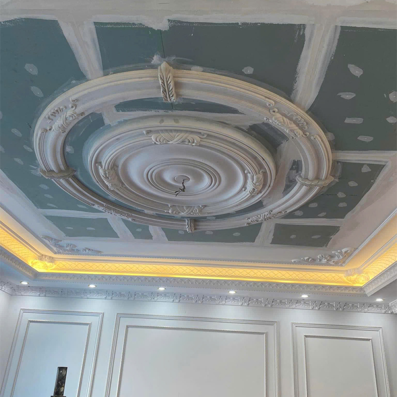Trang trí trần nhà: Phào chỉ PS thường được sử dụng để trang trí cho trần nhà, tạo điểm nhấn và mang lại sự sang trọng cho không gian. Bạn có thể tạo ra các mẫu hoa văn tinh tế hoặc đơn giản tùy thuộc vào sở thích cá nhân.